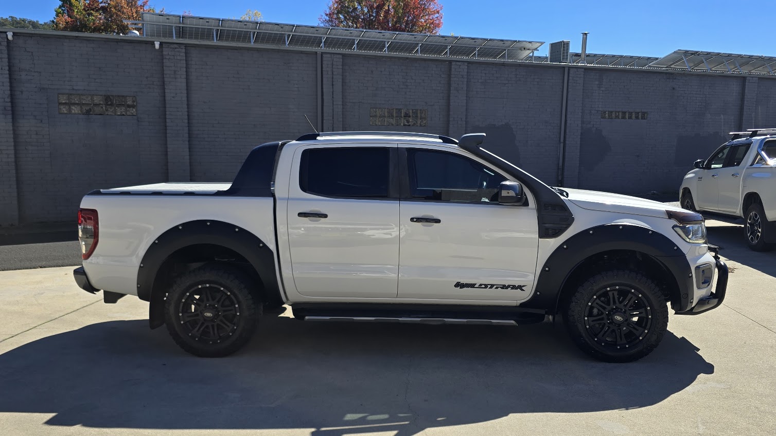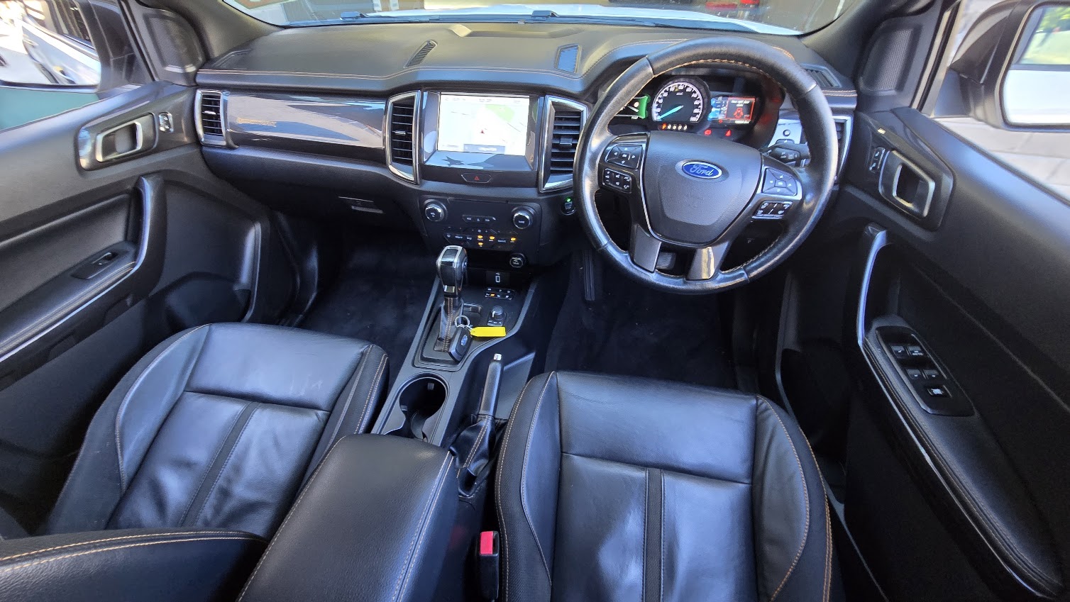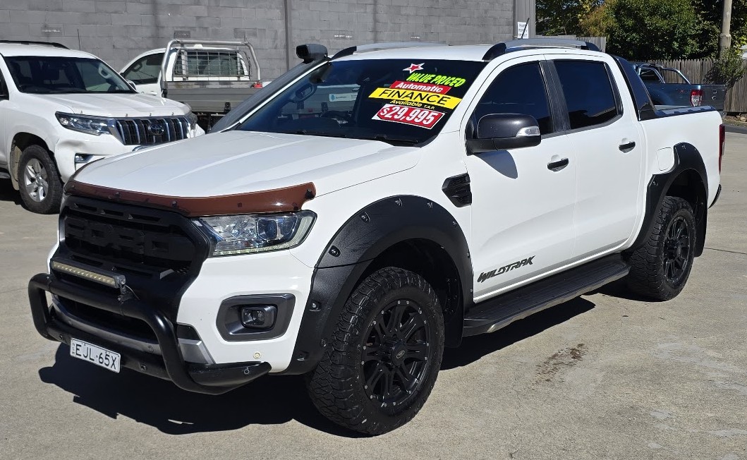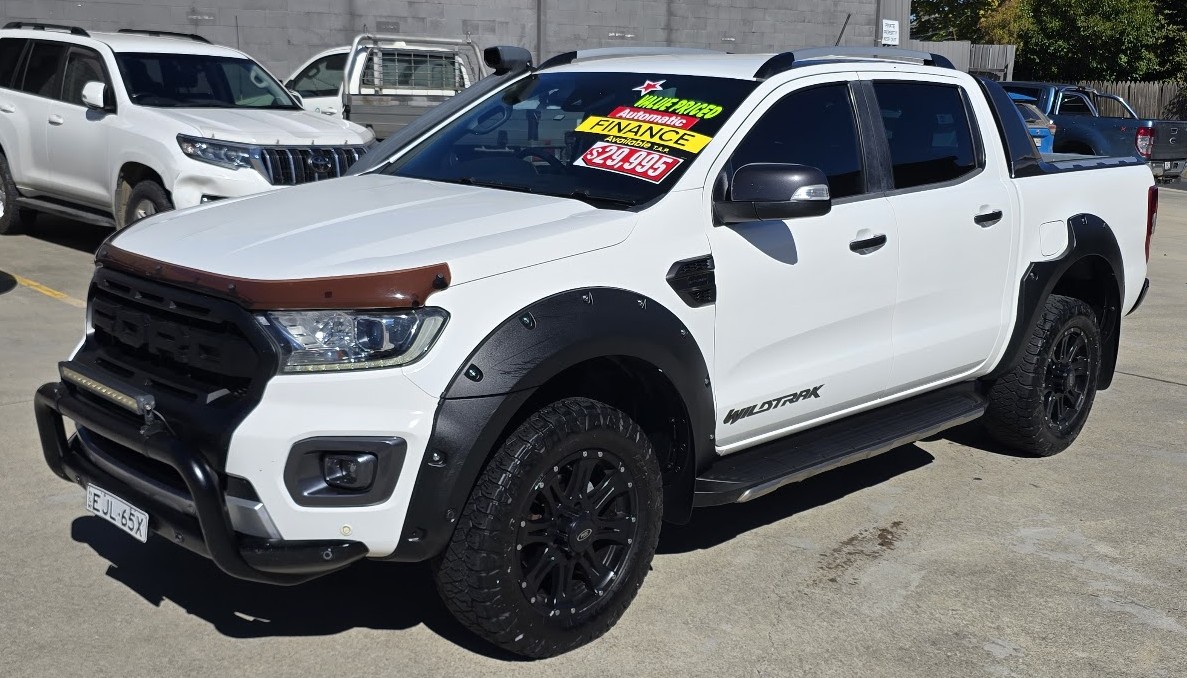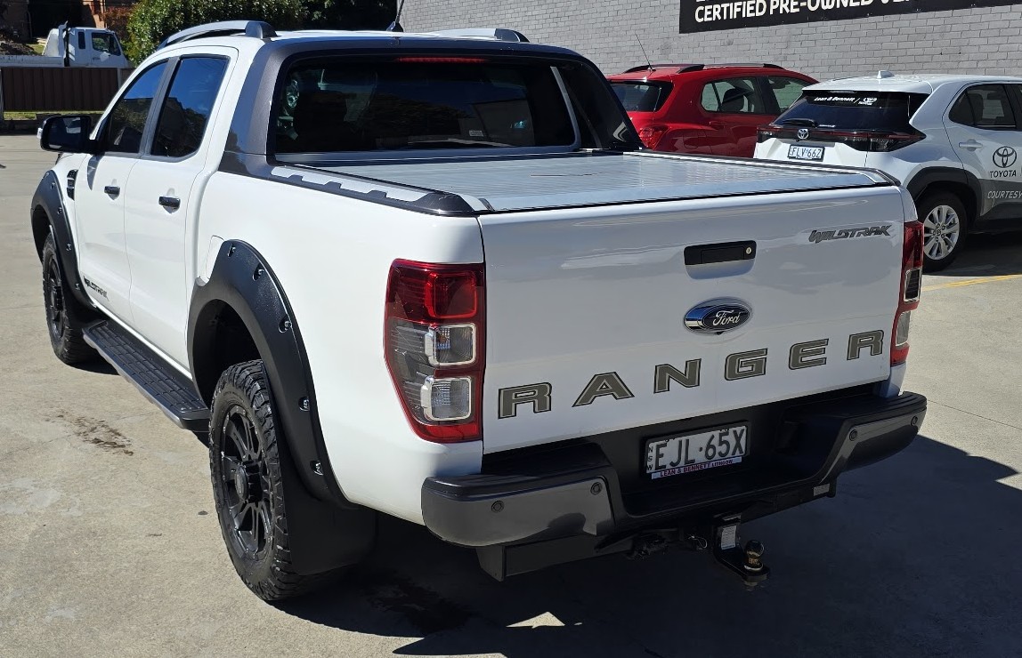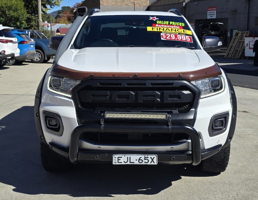 This great looking Ford Ranger Wildtrak has Snorkel, Nudge Bar, Tint, Towbar, Hard Cover, Off Road Tyres, ABS brakes, leather steering wheel, driver attention detection and front & rear power windows. Answer calls listen to music using the multi-function steering wheel. Bluetooth capability that allows you to make hands free phone calls while driving. 18″ alloy wheels, passenger airbag, adaptive cruise control and brake assist. It has heated seats great for those cold winter mornings. It has forward collision alert/warning. This car has driver airbag. Last but not least it has leather seats and electric power assisted steering.