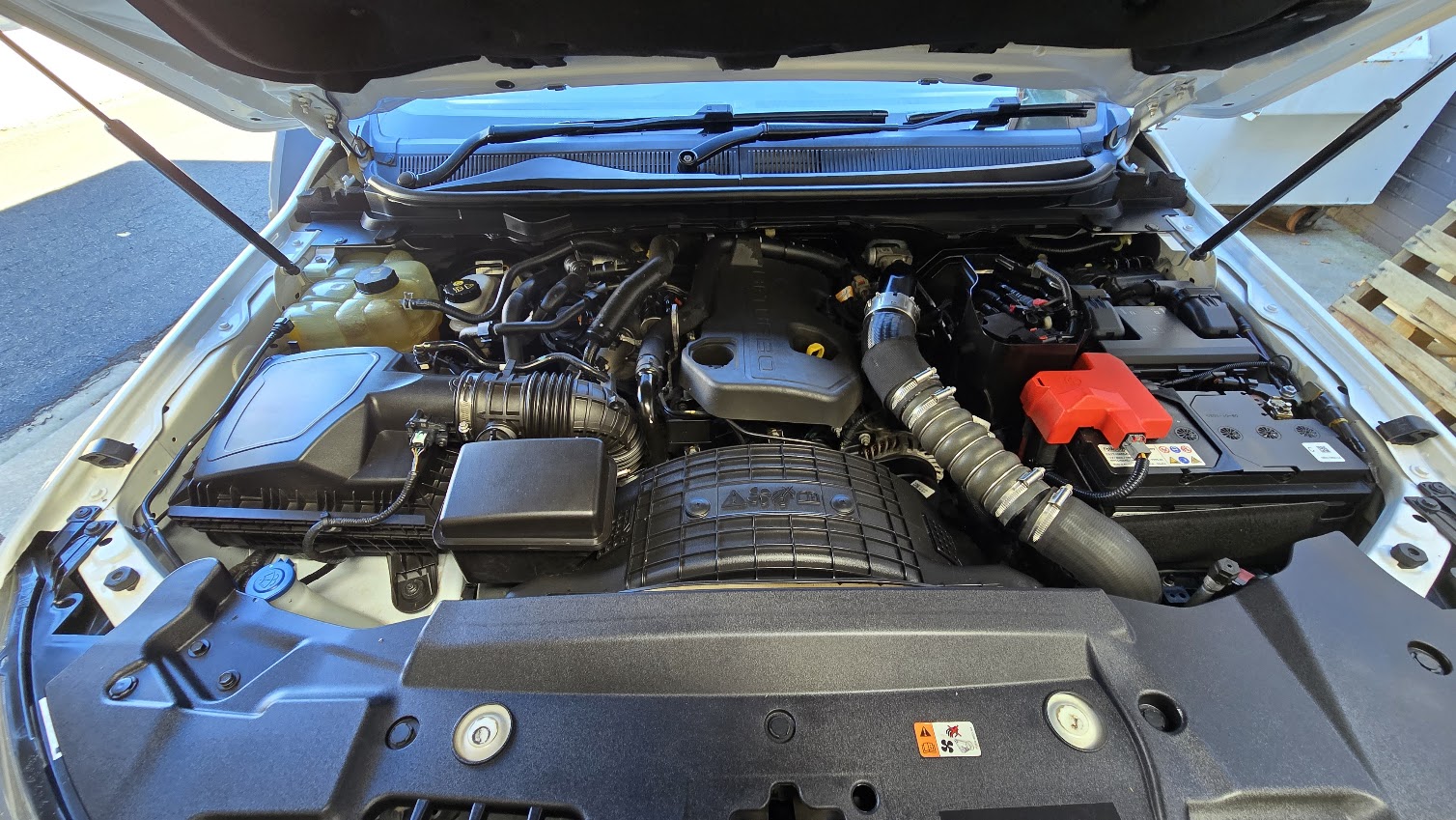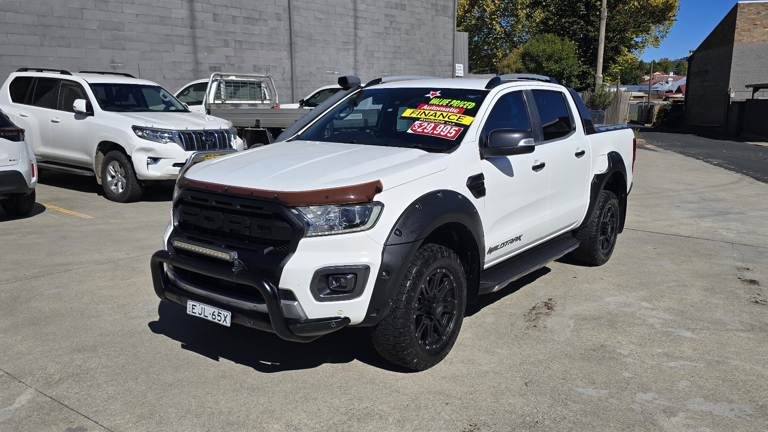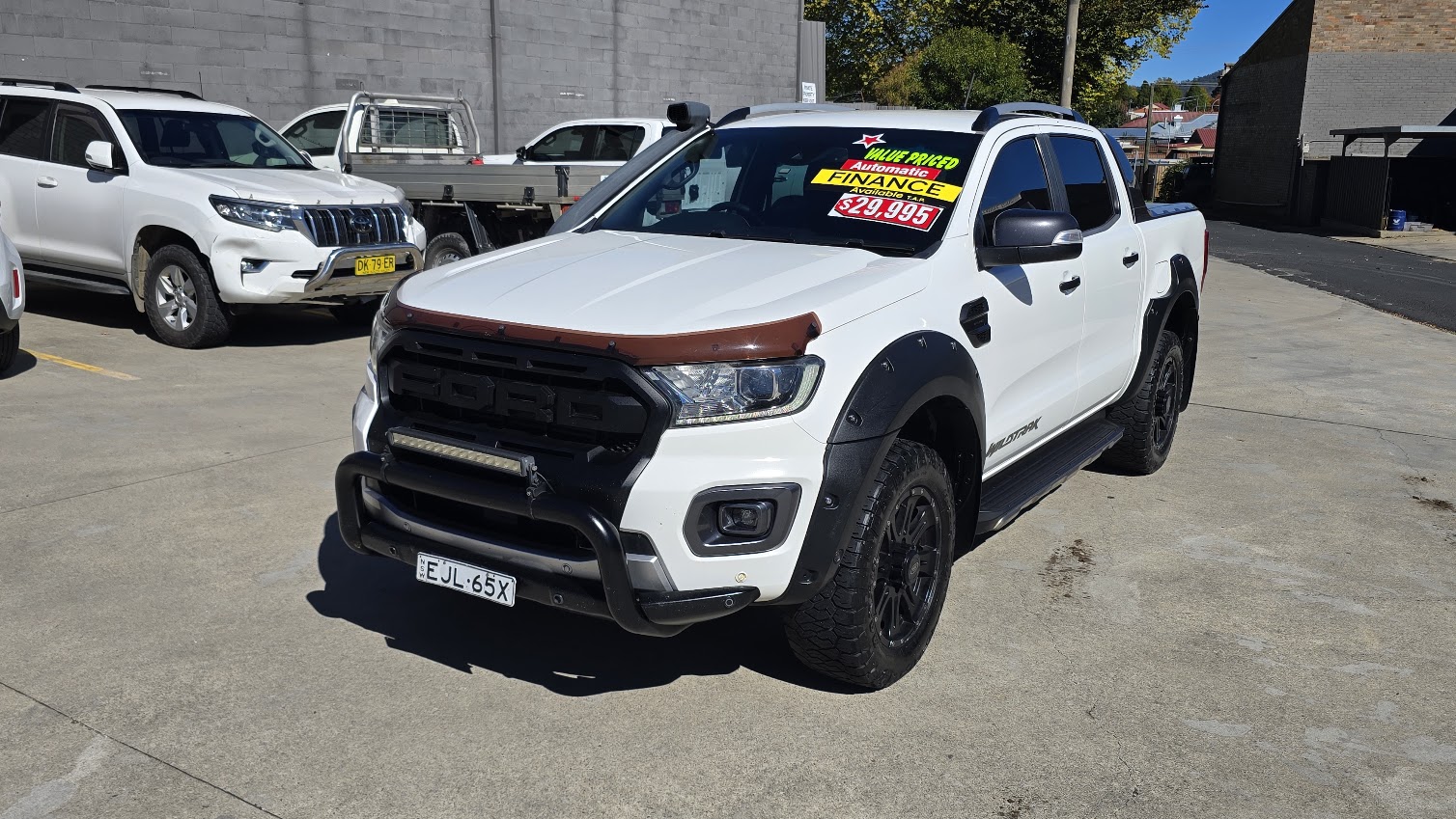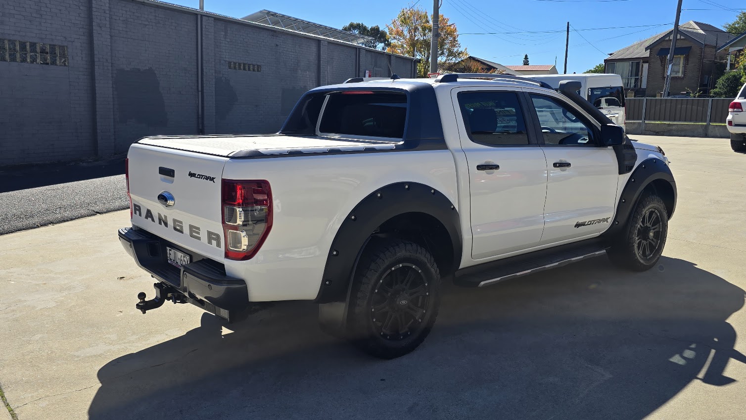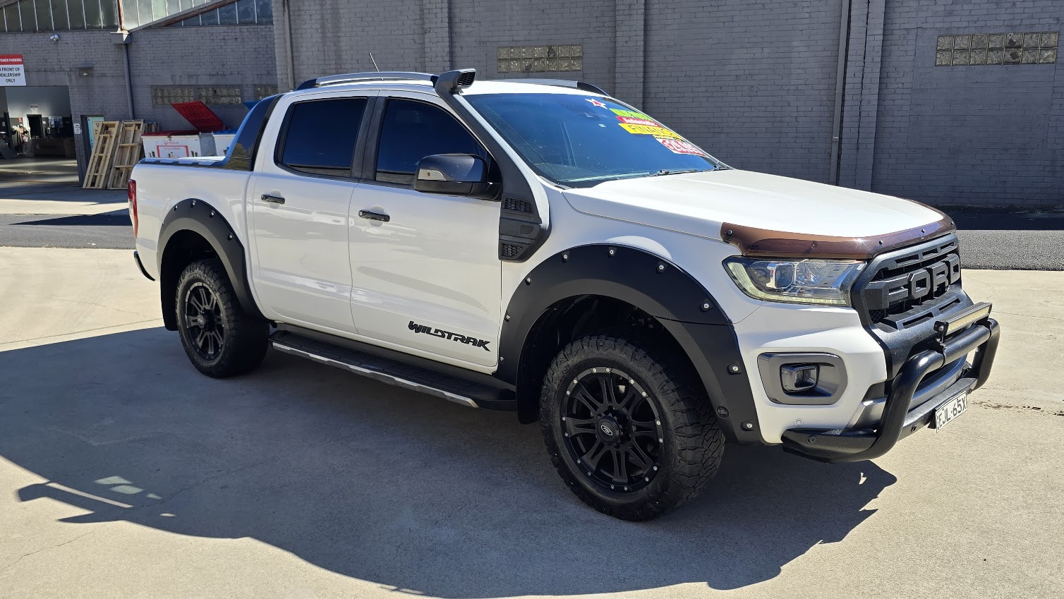 This great looking Ford Ranger Wildtrak has Snorkel, Nudge Bar, Tint, Towbar, Hard Cover, Off Road Tyres, ABS brakes, leather steering wheel, driver attention detection and front & rear power windows. Answer calls listen to music using the multi-function steering wheel. Bluetooth capability that allows you to make hands free phone calls while driving. 18″ alloy wheels, passenger airbag, adaptive cruise control and brake assist. It has heated seats great for those cold winter mornings. It has forward collision alert/warning. This car has driver airbag. Last but not least it has leather seats and electric power assisted steering.